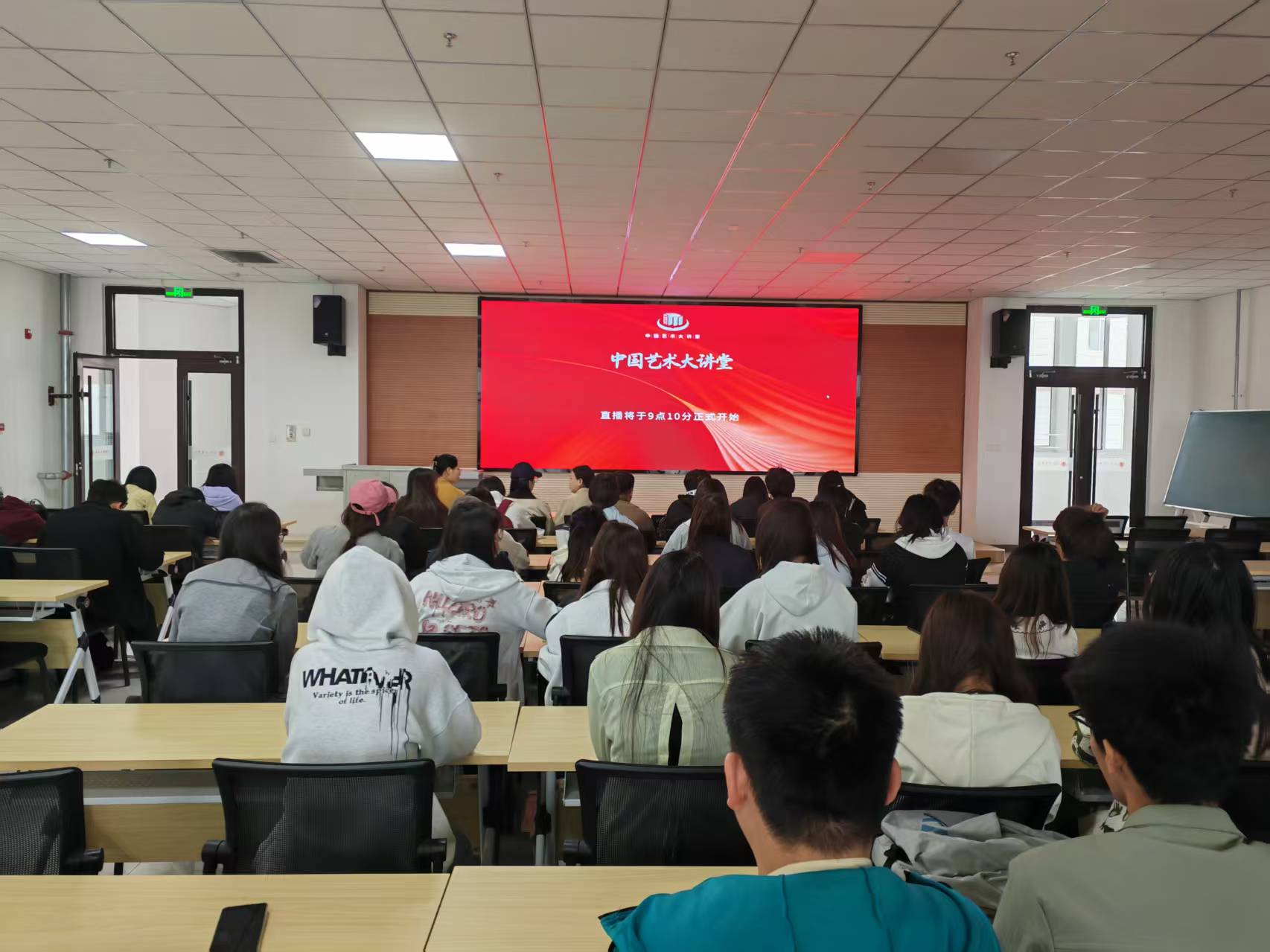 2025 年5月7日上午9 时,我校积极响应全国高校教师网络培训中心与教育部高等学校戏剧与影视学类专业教学指导委员会号召,组织艺术学院师生于综合楼C-501 教室收看 “中国艺术大讲堂第三讲”。
