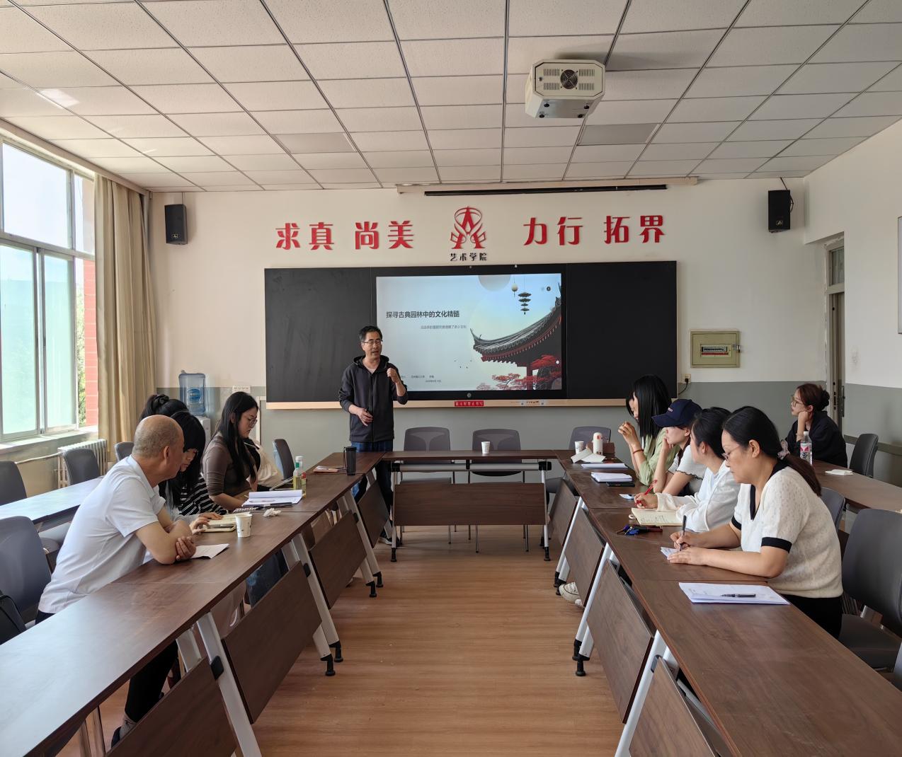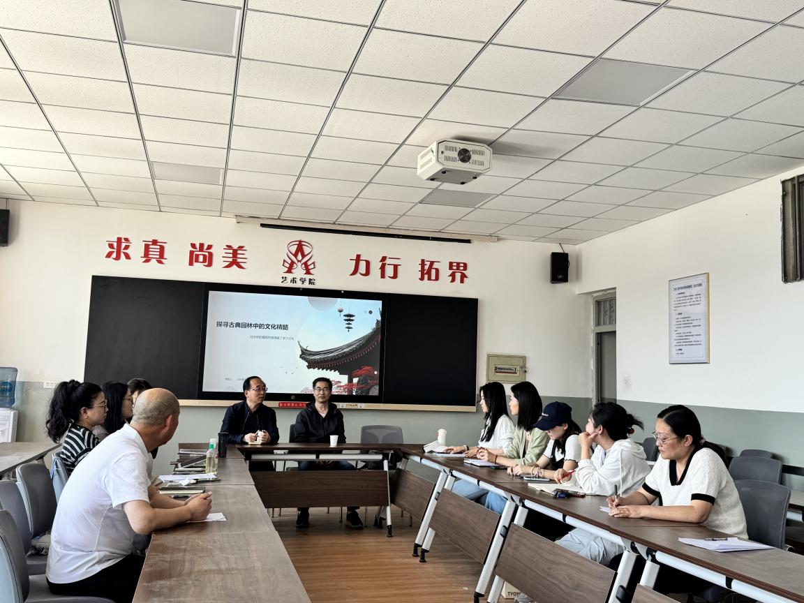 最后,研讨环节聚焦传统文化与设计实践融合,教师们与李教授展开深度对话,提出在授课环节也应系统关注文化叙事与空间设计之间的关系,梳理古典园林文脉与空间功能的关联性,强化学生的空间文化认知。本次教研活动深化了教师对古典园林美学的理解,更为传统文化与空间设计融合提供了多元视角,丰富了后续文化传承与空间实践教学创新路径。