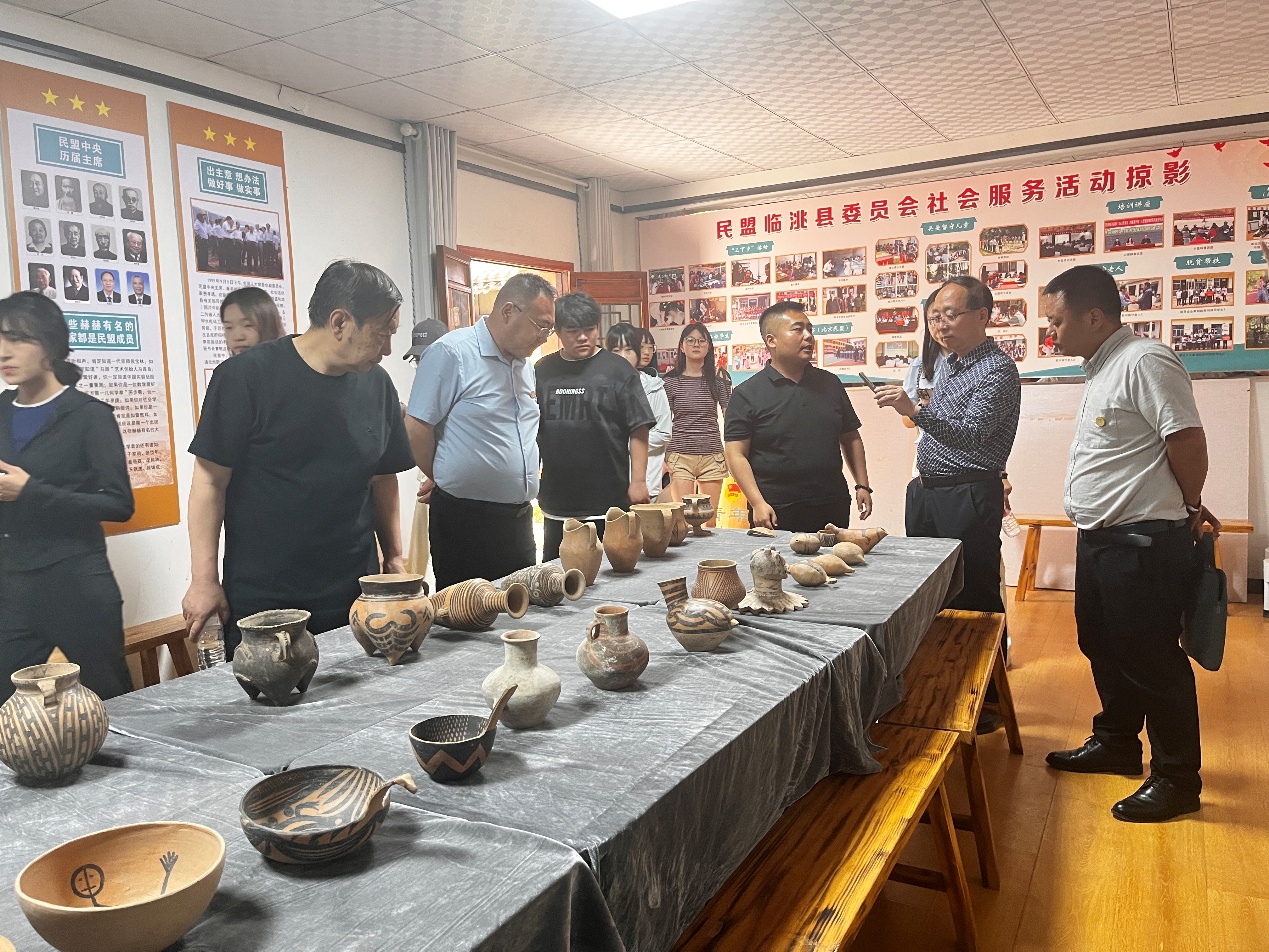 团队前往甘肃省临洮县马家窑文化展馆进行考察期间,临洮非遗保护协会会长藏博老师为师生们详细介绍了关于马家窑彩陶的历史足迹和文化底蕴,介绍了他们团队制作的马家窑彩陶专业精仿作品。师生近距离观摩新石器时代彩陶的纹饰、器型与制作工艺,并就马家窑彩陶纹样在产品设计中的应用展开了交流,剖析几何纹、蛙纹、水波纹等符号背后的史前文明密码,学生们对此马家窑彩陶纹样产生了深厚的兴趣。师生团队又参观了马家窑村展馆,展馆内高度还原了马家窑彩陶开采的情景实况,学生们也对其中的一些小的细节观察的非常投入。艺术学院院长杨明教授表示非遗活态传承需要青年力量的注入,这次实践为课程开发提供了鲜活的案例。