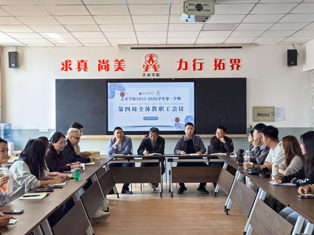 2025年9月25日,艺术学院第四周全体教职工工作会议在2-410会议室顺利召开。学院党委书记毕征,行政院长张德红,教学院长徐越、王坤及全体教职工共同参会。会议由党委书记毕征主持。