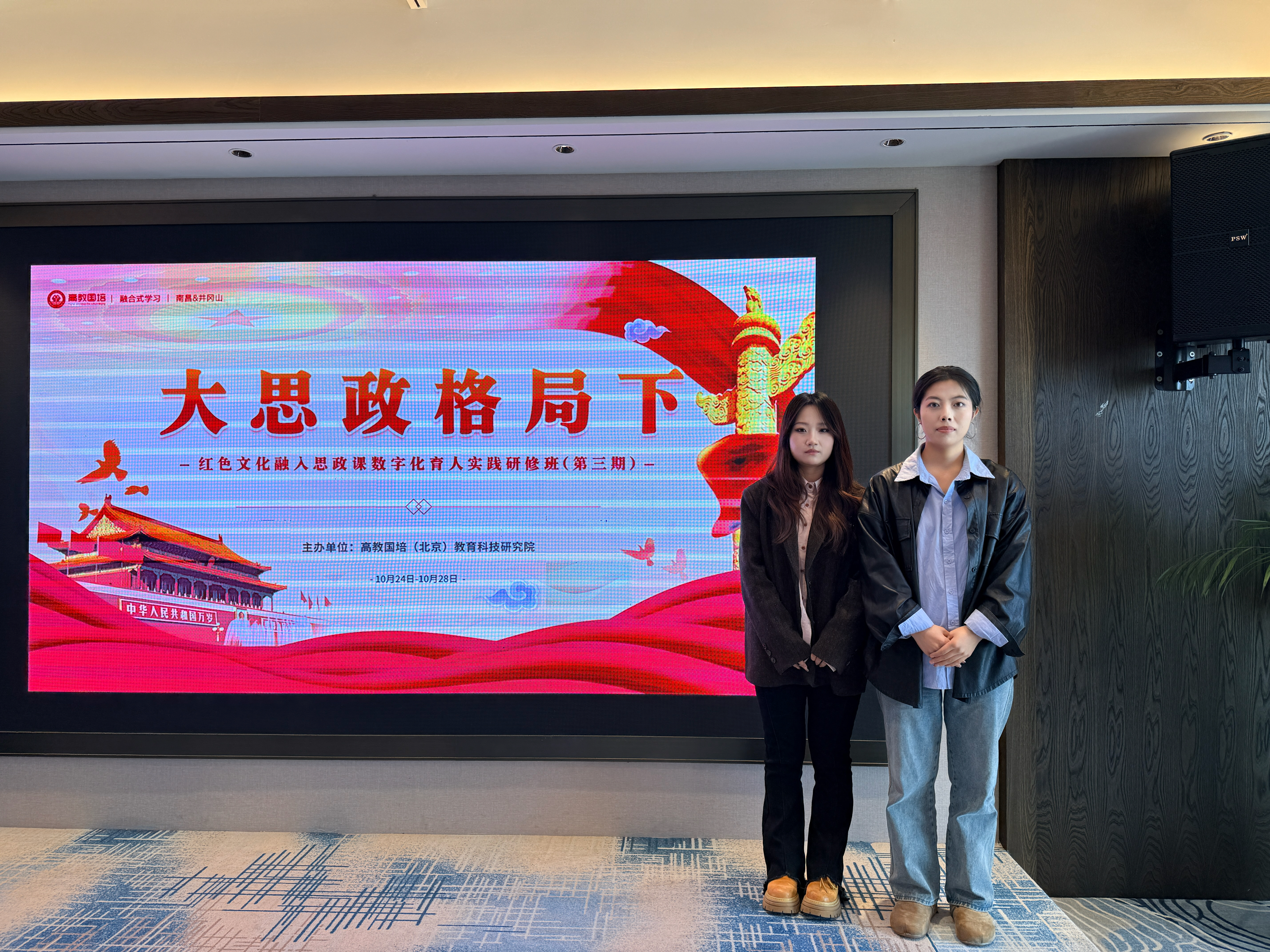 为进一步加强我院辅导员积极探索思政课育人新路径,10月24日至27日,“大思政格局下红色文化融入思政课数字化育人实践研修班(第三期)”在江西南昌举行。艺术学院办公室主任李红艳、辅导员彭兰兰应邀参加此次为期三天的研修学习,聚焦红色文化与思政教育的数字化融合路径。