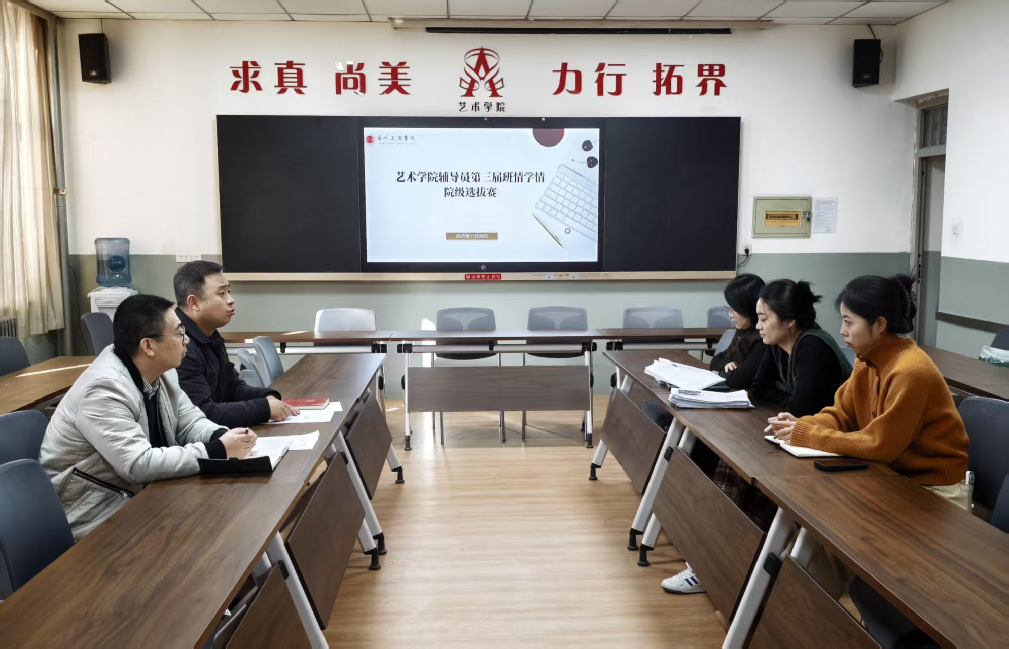 为持续推进辅导员队伍专业化、职业化建设,切实提升辅导员对学生基本情况、思想动态和成长需求的精准把握能力,深入贯彻落实学校相关要求,2025年11月28日,艺术学院在2-410会议室举办第三届辅导员班情学情大赛院级选拔赛。
