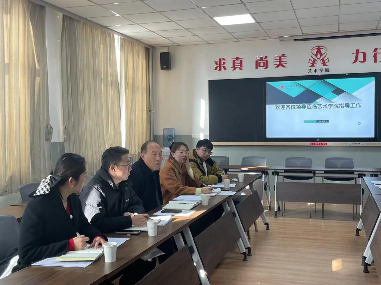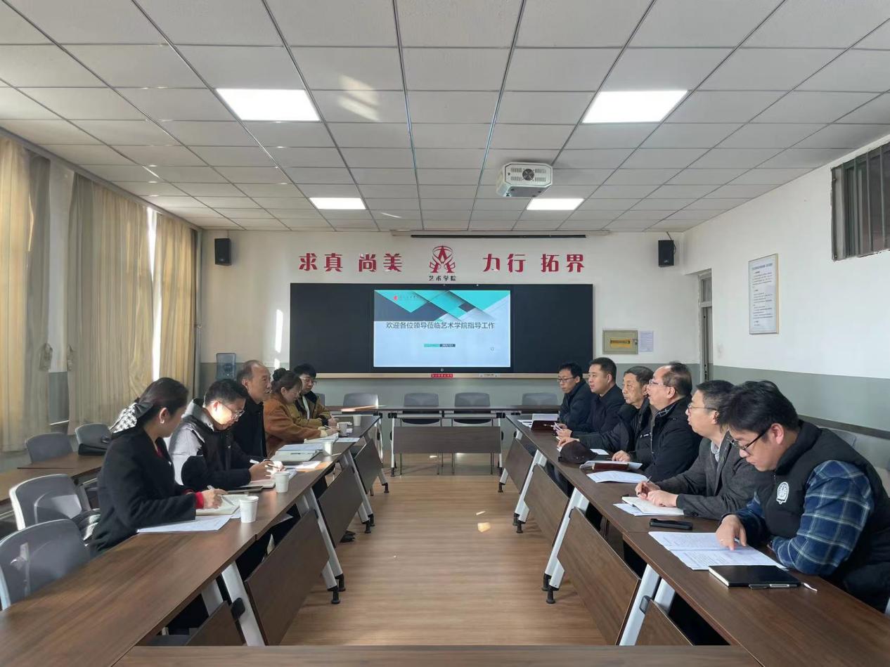 为深入贯彻落实本科教学工作合格评估相关要求,持续深化产教融合育人机制,进一步完善实践育人体系,12月3 日上午,副校长王治和带队,教务处副处长高雅瑢一行5人莅临艺术学院,在2-410会议室召开实习实践基地建设专项调研座谈会。艺术学院领导班子全体成员参加座谈会。