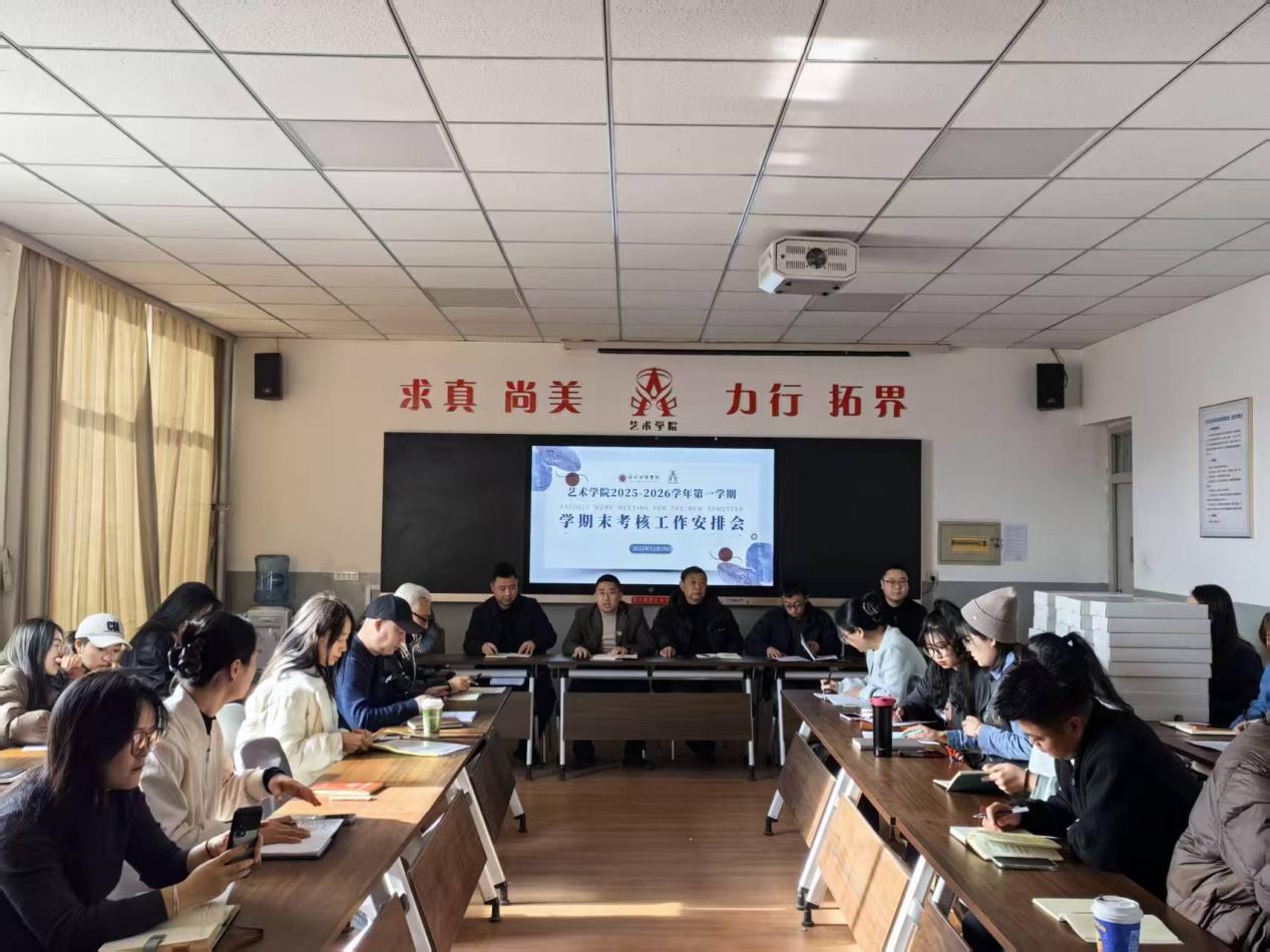 为全面贯彻本科教学工作合格评估要求,扎实推进“以评促建、以评促改”工作部署,进一步规范教学管理流程、强化教学过程监控、提升人才培养质量,2025年12月18日下午,艺术学院在2-410会议室召开本学期末考核工作安排会议。学院领导班子成员、全体教职工参加会议,会议由学院党委书记毕征主持。