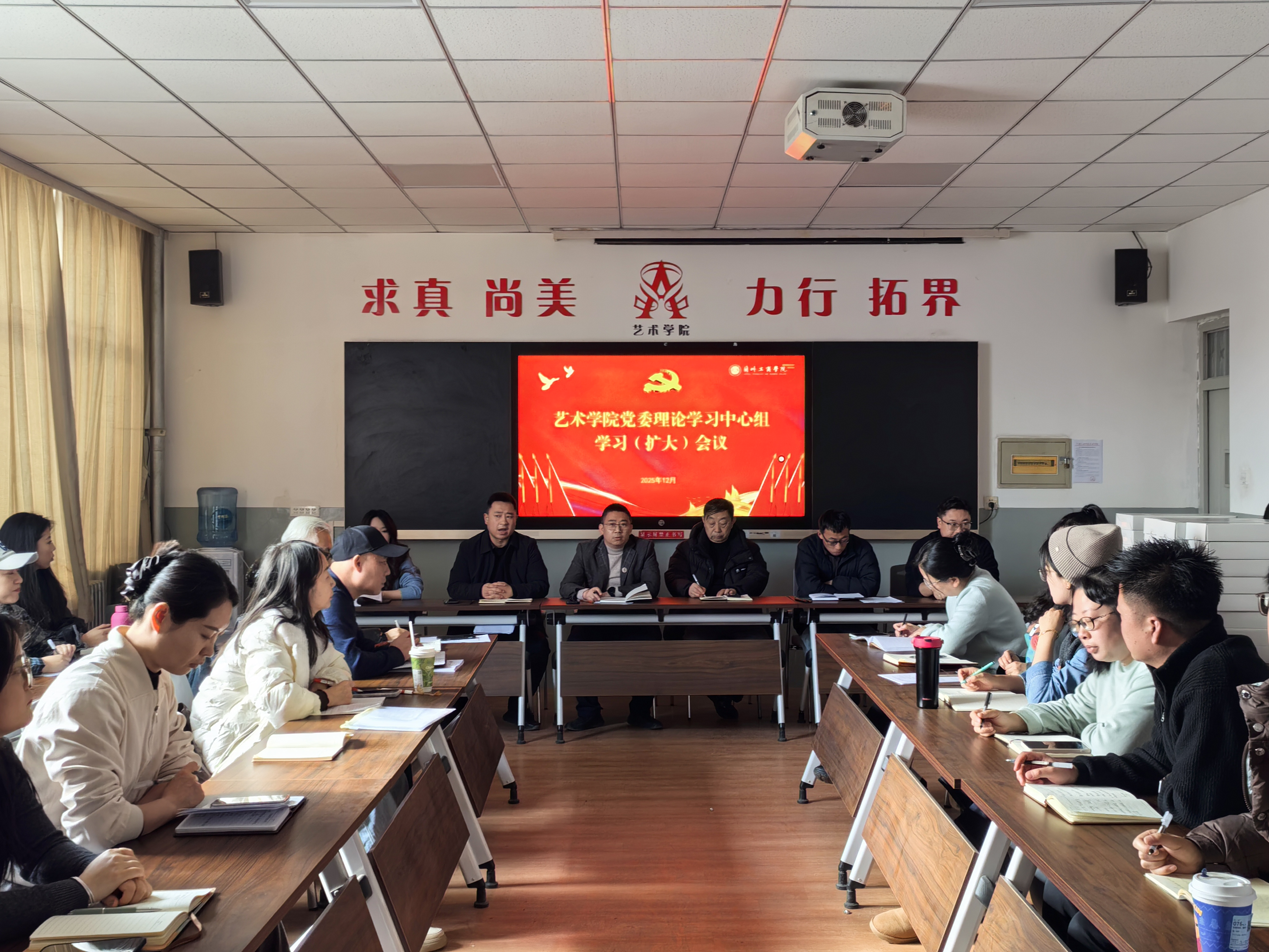 2025年12月18日,艺术学院召开党委理论学习中心组学习(扩大)第十二次会议,学习传达2025年中央经济工作会议精神。学院领导班子成员、党委委员、各党支部书记、及教职工参会,会议由学院党委书记主持。