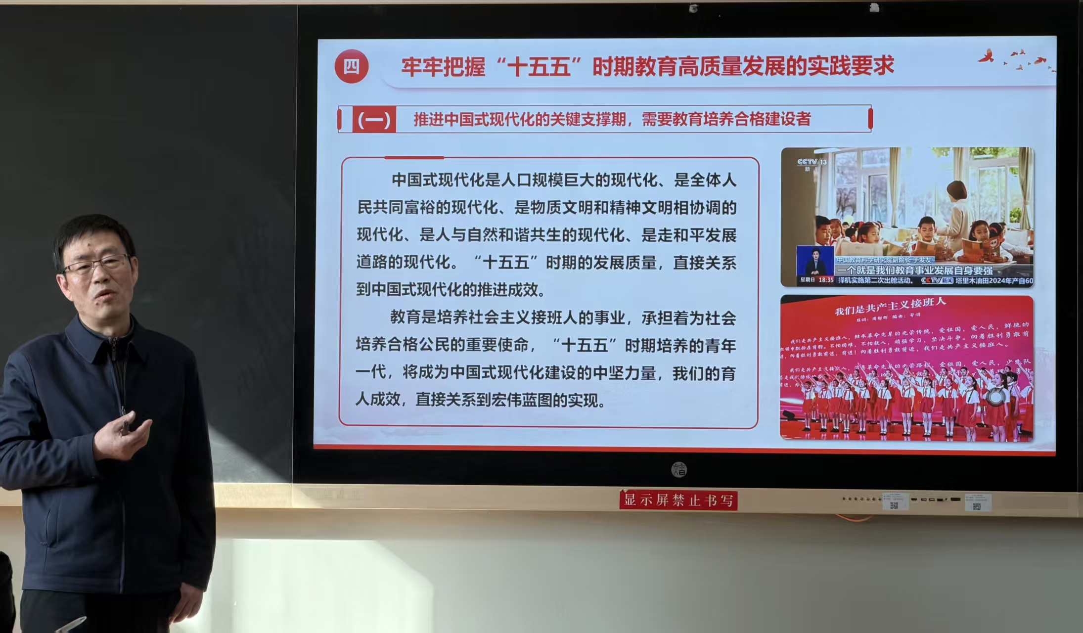 为深入学习宣传贯彻党的二十届四中全会精神,精准把握全会对教育强国建设的战略部署202619日,学校教学常务副校长宿光平应邀2-410会议室,为艺术学院作“深刻领会二十届四中全会对教育强国建设的考虑与部署主题宣讲学院全体教职工参加学习