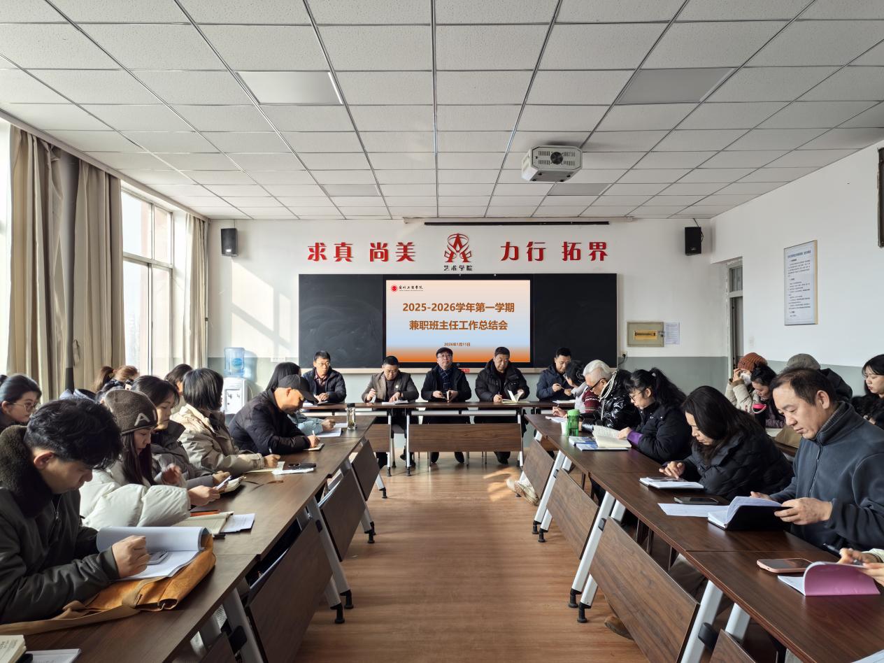 为进一步加强学生思想政治教育工作,总结兼职班主任工作经验,推动学院育人工作高质量发展。2026年1月10日,艺术学院在善问楼410会议室召开了2025-2026学年第一学期兼职班主任工作总结大会。学院领导班子、22名兼职班主任及全体辅导员老师参加了会议。