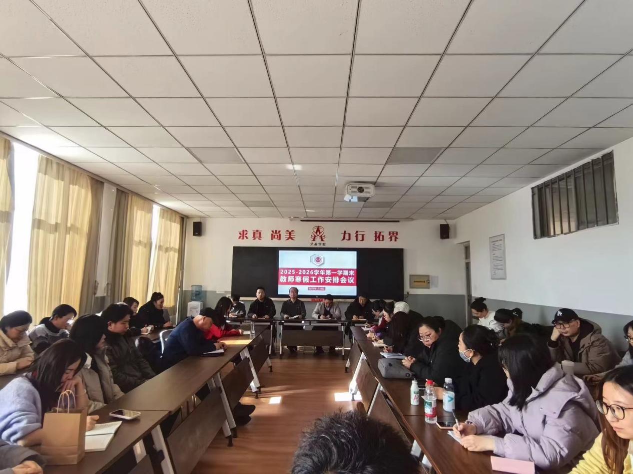 2026年1月16日,艺术学院在2-410会议室召开本学期末教师寒假工作推进会。学院领导班子成员及全体教职工参加会议,会议由学院党委书记毕征主持。