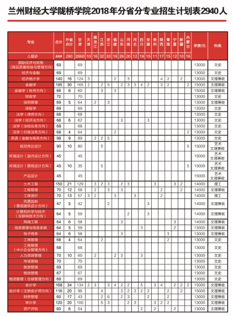 兰州财经大学陇桥学院2018年招生计划
