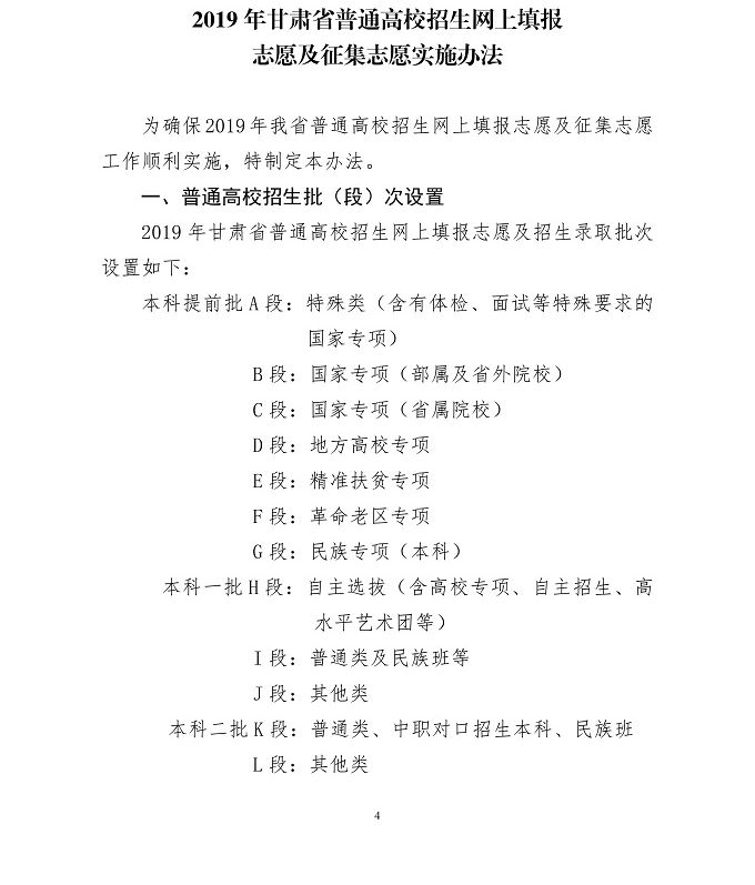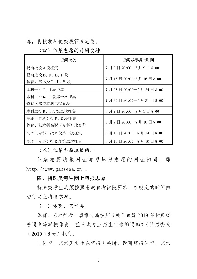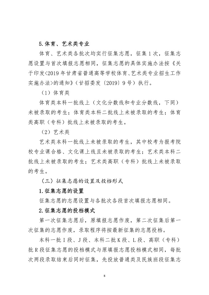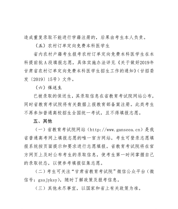 2019年甘肃省普通高校招生网上填报志愿及征集志愿实施办法