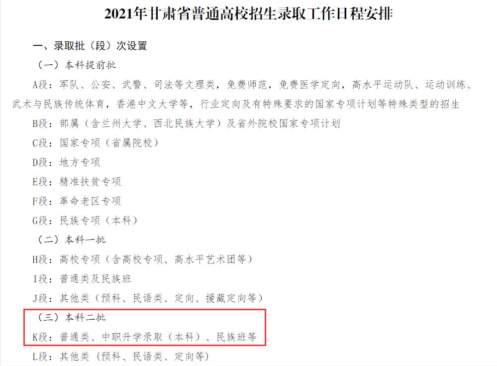 2021年甘肃省高校招生录取工作日程安排