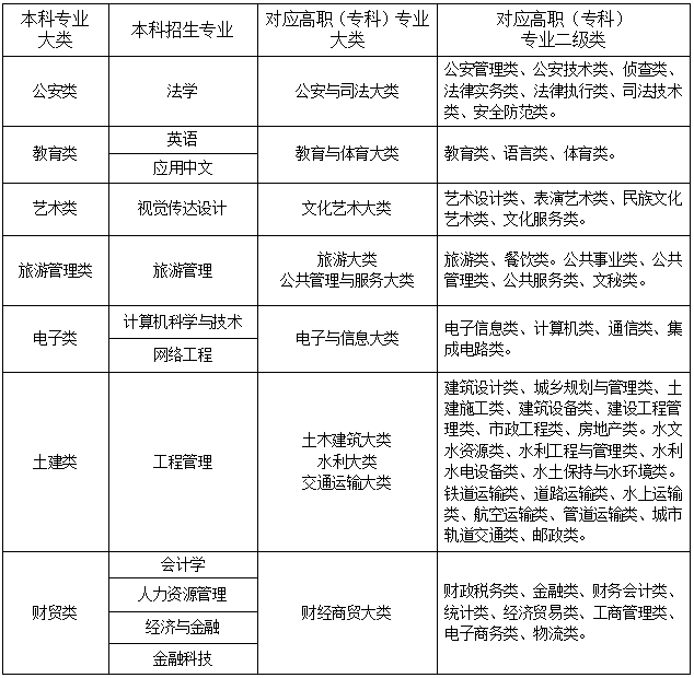 我校2026年高职(专科)升本科招生共有7个专业大类,12个招生专业,招收免试生的专业目录请参照《2026年甘肃省高职(专科)和本科专业大类对照表》。