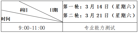 2.测试时间:根据全省统一安排,我校两轮专业能力测试时间分别为:
